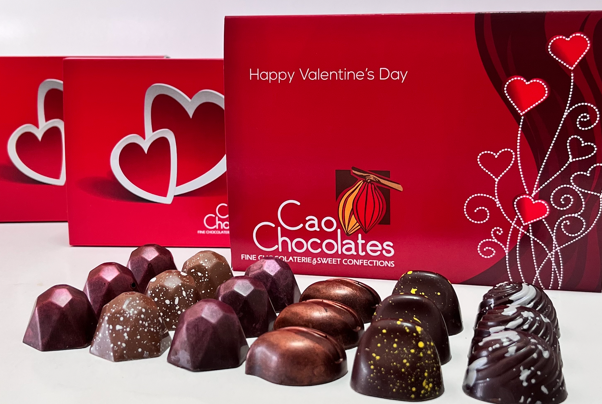 Impress your loved ones with Cao Chocolates' Valentine's collections. Our selected assortments was designed for refined chocolate aficionados seeking both quality and value. Order with confidence—we deliver nationwide with guaranteed arrival by February 14th, 2026. Place your order before February 11th, 2026.